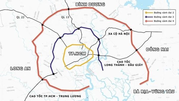 Cùng với đó, Đường Vành đai 4 với tổng chiều dài 159km, bao gồm 10 dự án thành phần và tổng vốn đầu tư hơn 120.000 tỷ đồng được xem là trục giao thông chiến lược kết nối Đông Nam Bộ – Tây Nam Bộ – Tây Nguyên. Khi hoàn thành, tuyến đường sẽ góp phần giảm tải cho giao thông nội đô TP.HCM, đồng thời mở ra hành lang vận tải liên vùng, liên kết giữa các khu công nghiệp, đô thị, cảng biển và sân bay.